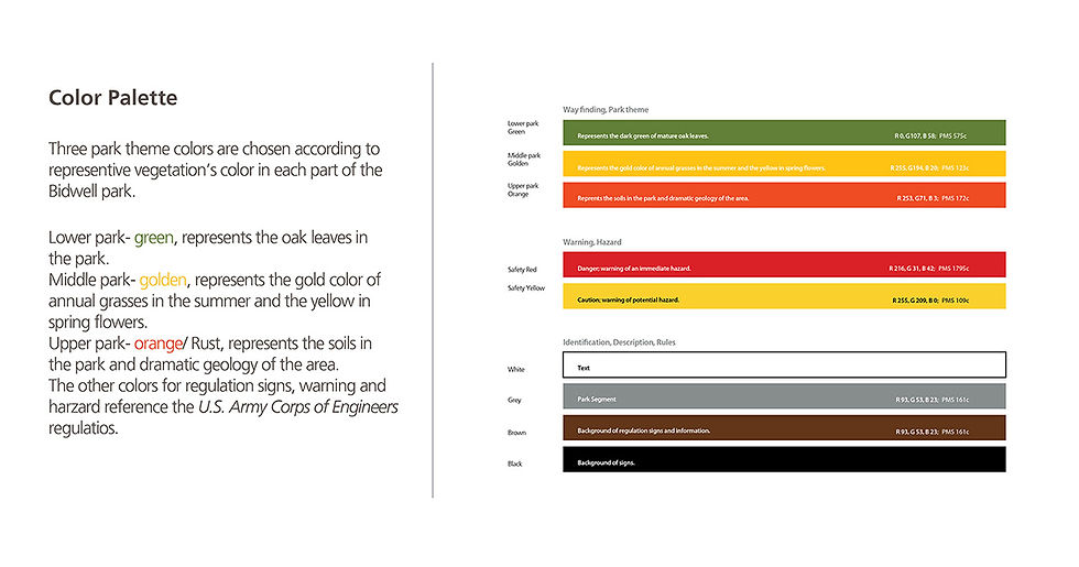 An 11-members team worked with the City of Chico located in Northern California and their Park’s Department to design a sign system with supporting guidelines and specifications for Bidwell Park.